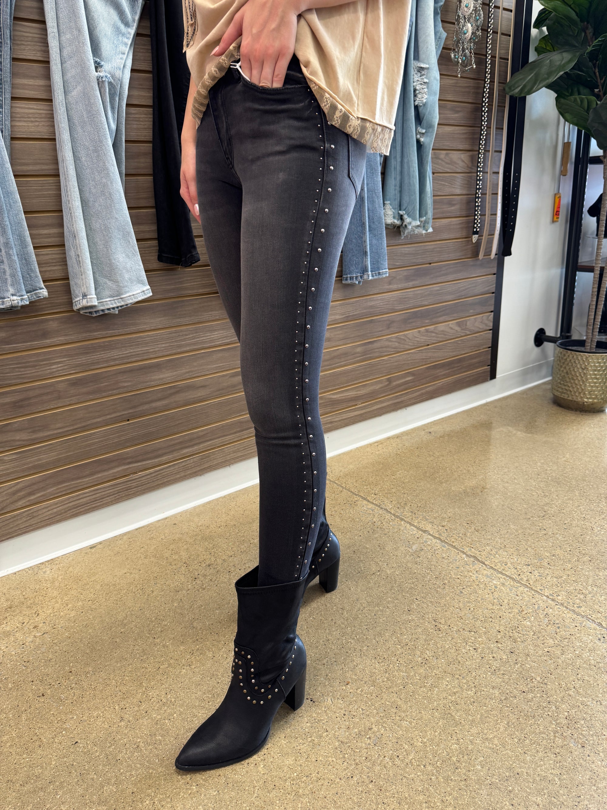 A Pair of High Rise Side Stud Ankle Skinny Jean