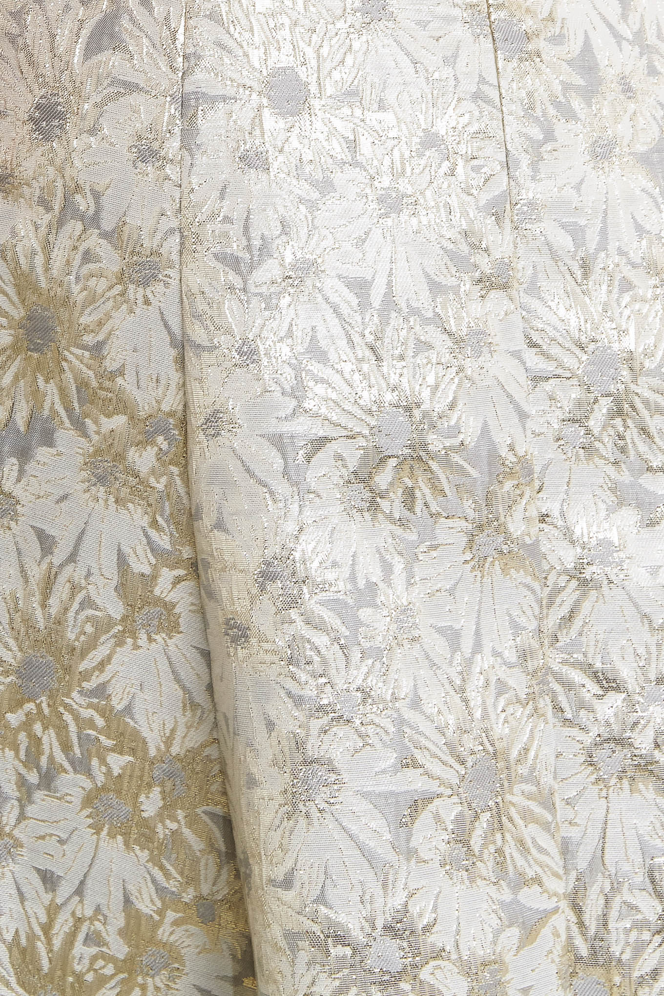 A woven jacquard woven midi dress featuring strapless neckline, circle skirt and smocked back with zipper closure