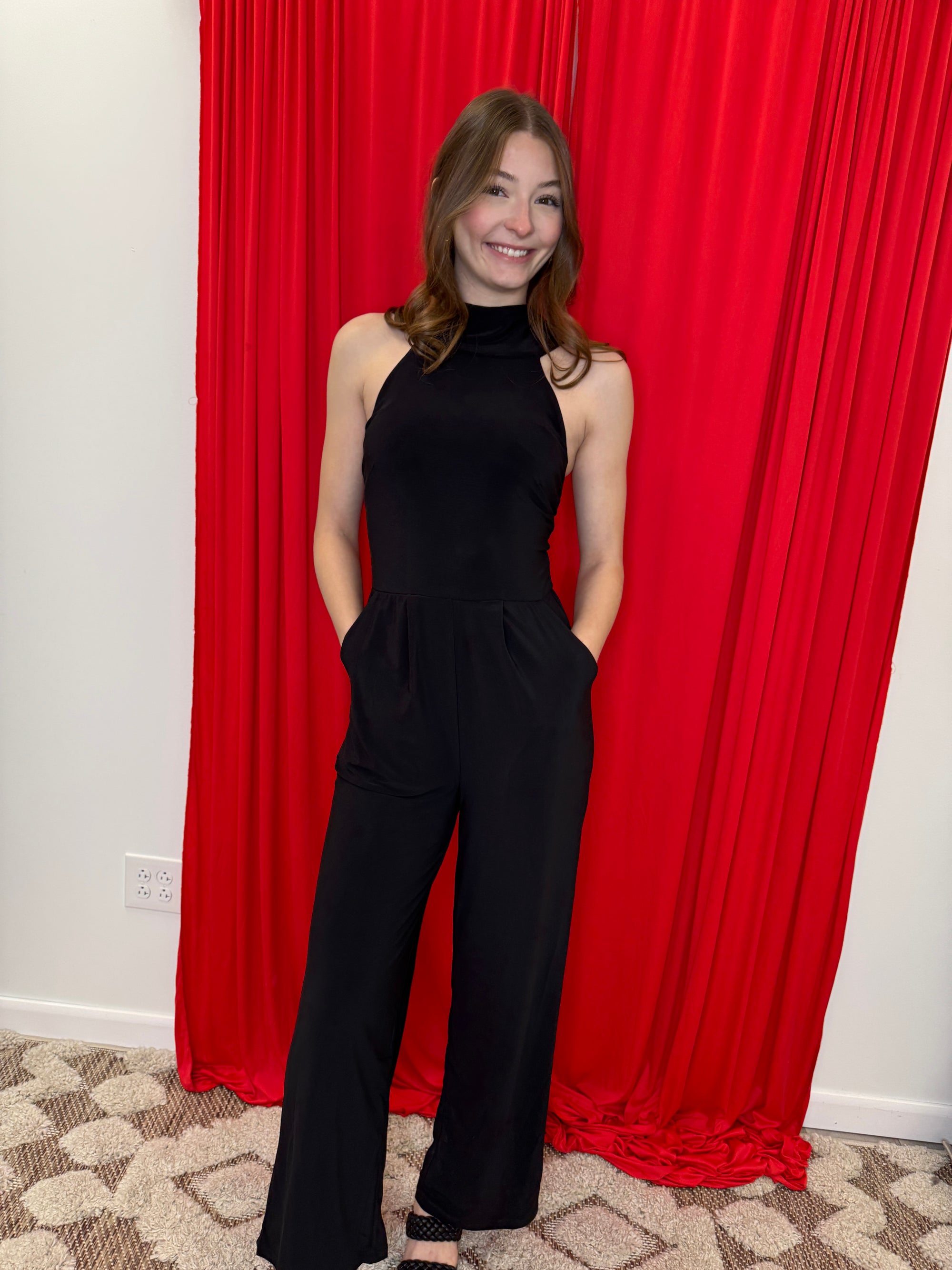 A Mock Neck Sleeveless Wide Leg Jumpsuit