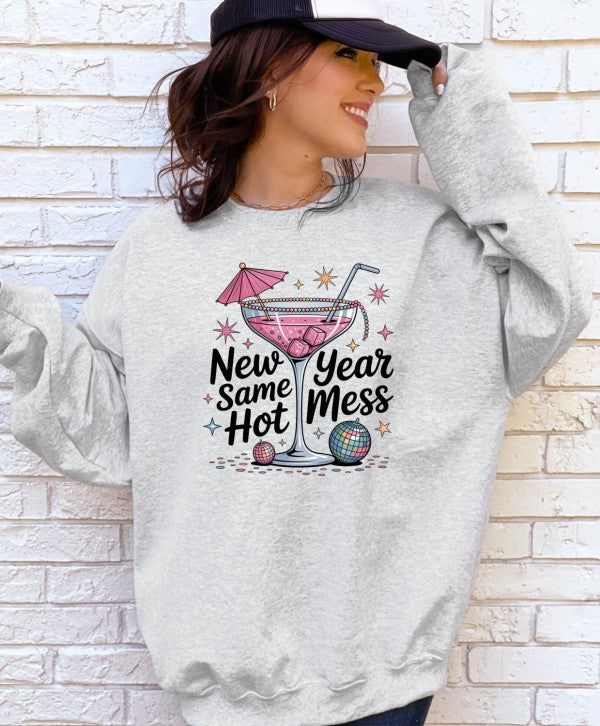 This New Year, Same Hot Mess sweatshirt is the perfect blend of cozy fleece comfort and playful party girl vibes. Whether you're celebrating at home, out with friends, or pretending to stick to resolutions, this one brings the fun.