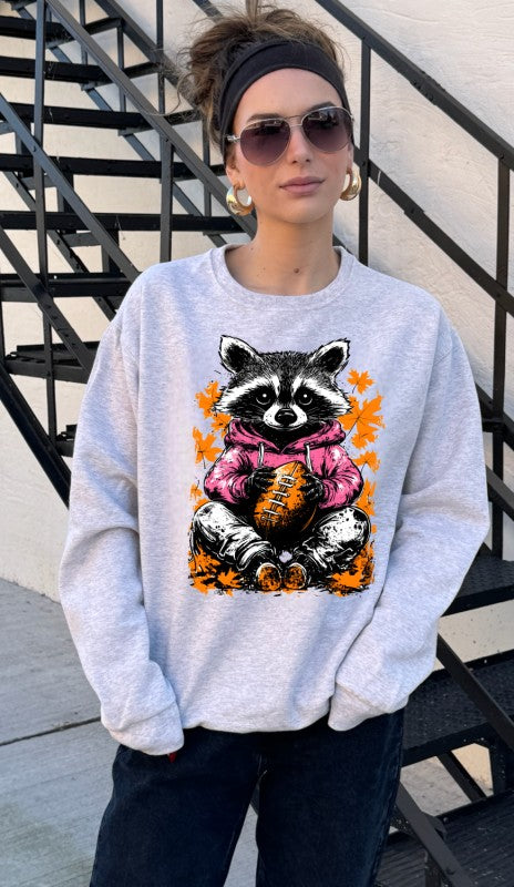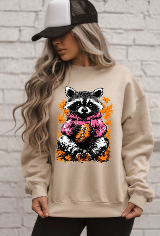 Racoon Football Graphic Crewneck Sweatshirt 8.0 oz. pre-shrunk fleece50% cotton / 50% polyester