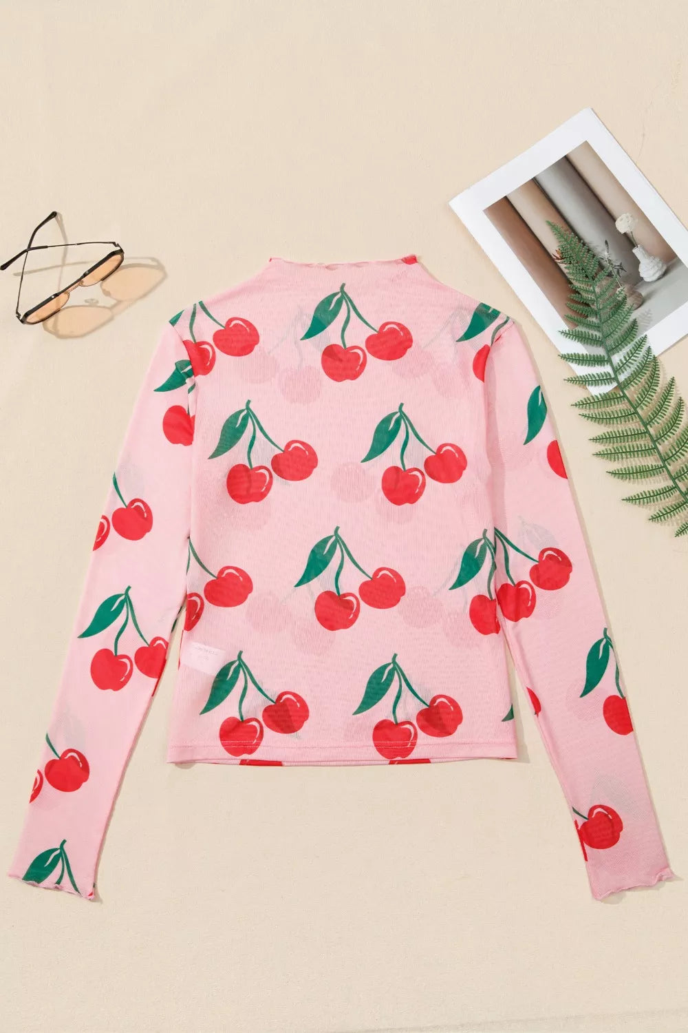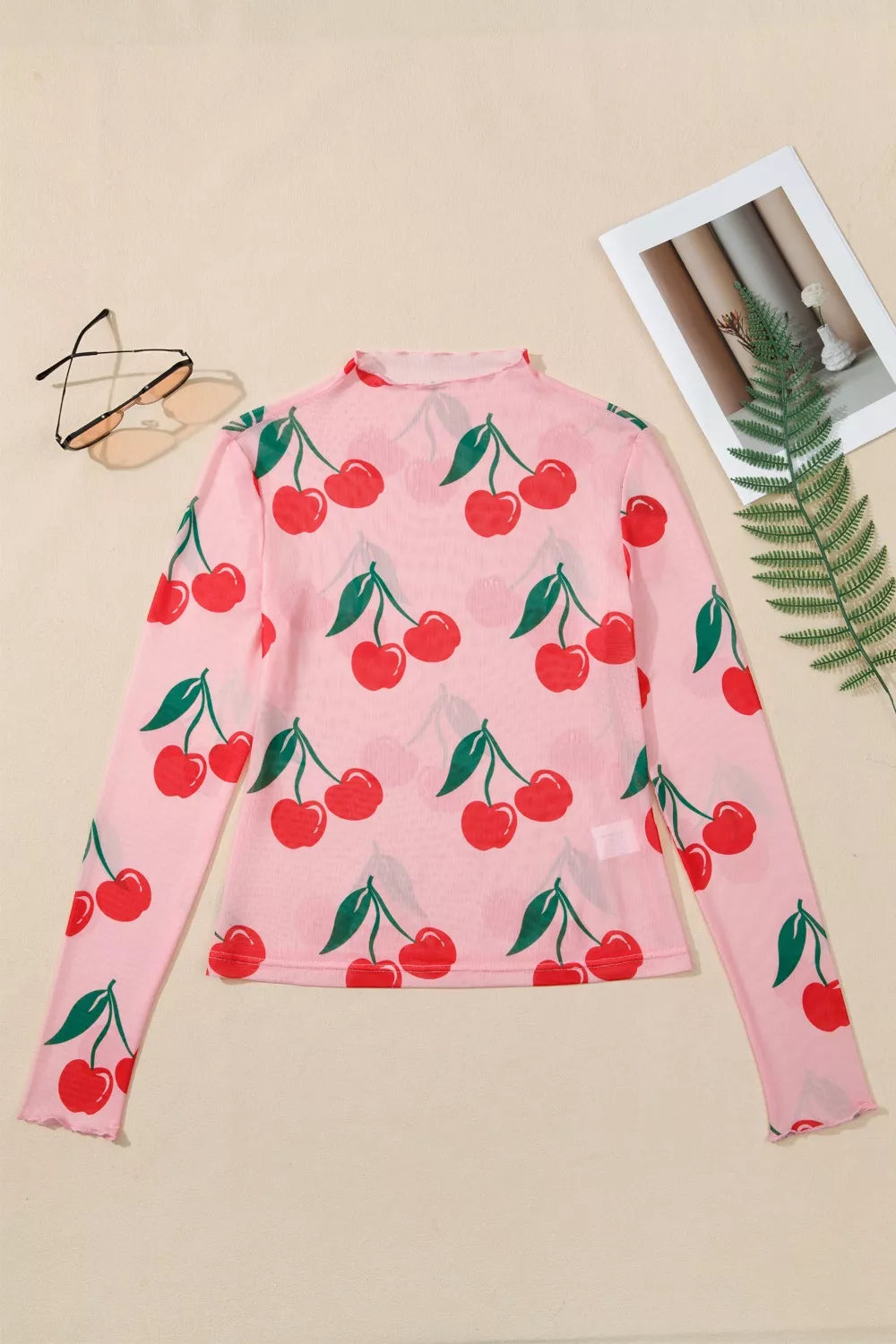 Get ready to turn heads on girls' night out in this Cherry Print Lettuce Trim Long Sleeve Mesh Top! The vibrant cherry print and delicate lettuce trim details create an effortlessly chic look that's anything but basic. Throw it on with your favorite denim for an instant outfit that's equal parts fun and fabulous. The long sleeve mesh design offers just the right amount of coverage while keeping things flirty and fresh. Whether you're hitting the town or grabbing coffee with the crew, this top is your new go-to piece. Shop Lizzie's Boutique for unique fashion finds you'll love wearing again and again!