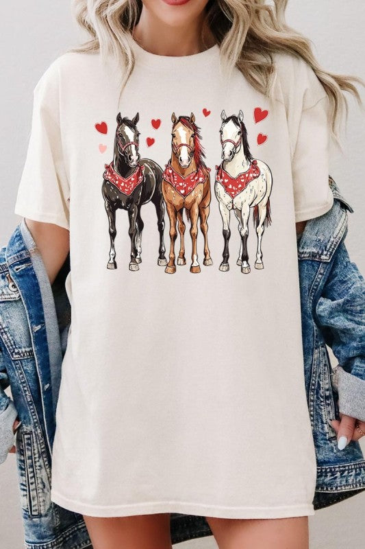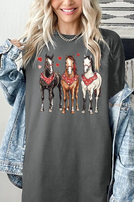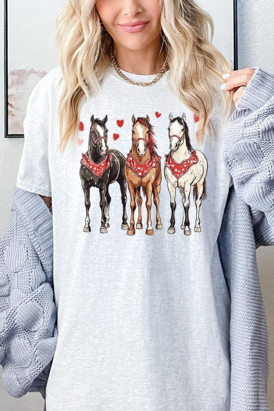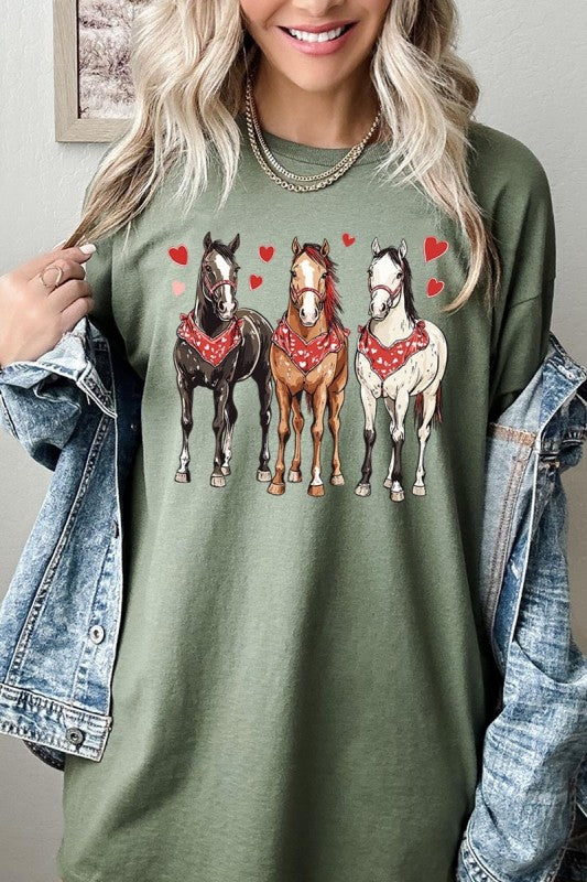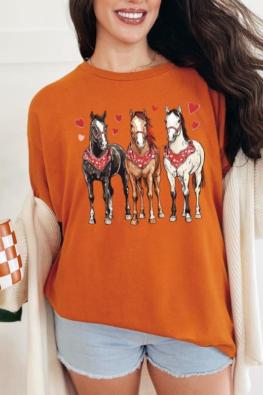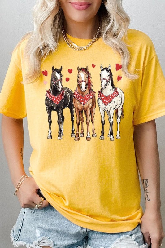 Saddle up for love this Valentine's Day in our charming Horse Graphic Tee! This heavy cotton classic features an adorable western-inspired horse design that's perfect for ranch lovers and equestrian enthusiasts alike. Crafted from quality heavyweight cotton, it's built to last through countless wears and washes. Whether you're hitting the trails or just showing off your love for all things western, this graphic tee brings personality and comfort to your everyday wardrobe. A delightful way to celebrate the season with style!valentine horse tee, western love shirt, cowboy heart top, country valentine tee, horse lover gift shirt, valentine rodeo tee, rustic valentine Graphic Heavy Cotton Tee.
