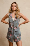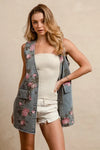 The Floral Print Washed Denim Long Rider Vest features a unique and stylish design. It is perfect for adding a pop of color and texture to your outfit. With its long length and denim material, it offers both fashion and functionality. This vest is a must-have for anyone looking to elevate their wardrobe with a trendy piece.