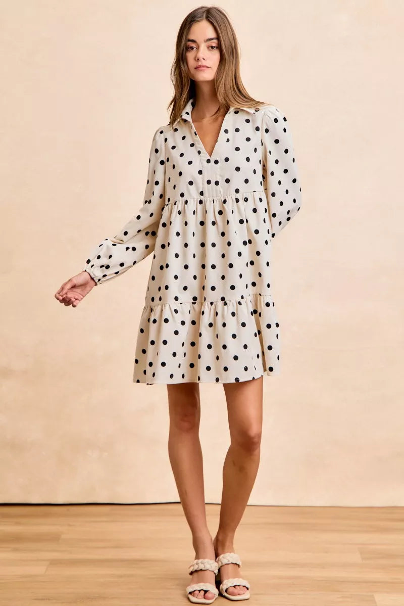 The Polka Dot Corduroy Collared V-Neck Dress is a charming and stylish piece for your wardrobe. With a playful polka dot pattern and cozy corduroy fabric, this dress offers a retro-inspired yet contemporary look. The collared V-neck adds a touch of sophistication to the design. Perfect for both casual and dressier occasions, this dress combines comfort and fashion effortlessly. Step out in confidence and elegance with the Polka Dot Corduroy Collared V-Neck Dress for a chic and timeless ensemble.