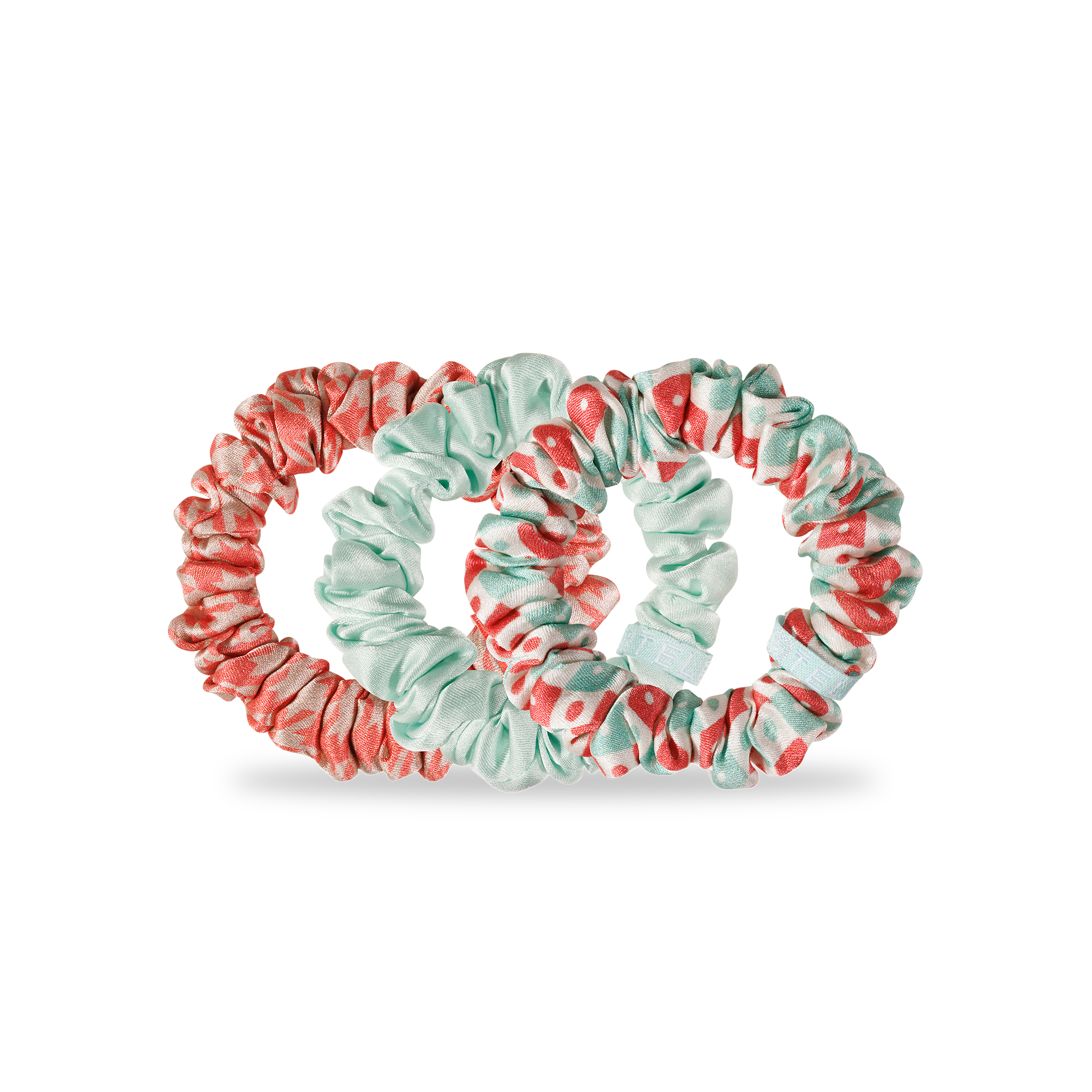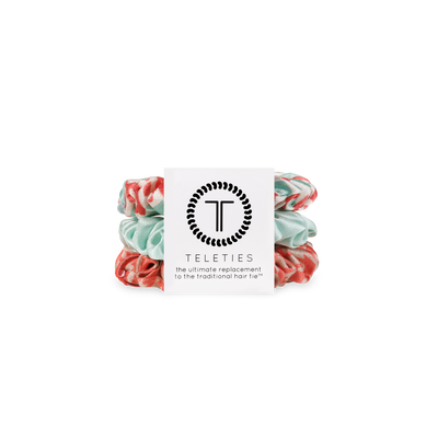 Refresh your look this season with TELETIES latest collection of Spring Silk Scrunchies. Designed to bring shimmer, shine and color to every one of your Springtime looks. Created with our innovative coil tucked inside of 100% Natural Silk, you’ll be wearing these scrunchies in your hair and on your wrist all year long!