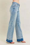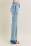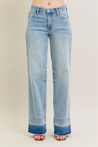 These contemporary wide-leg jeans feature a flattering high-rise silhouette crafted from premium stretch denim. The light wash finish offers versatile styling options while the distinctive released hem adds modern edge. The relaxed fit through hip and thigh creates a comfortable wearing experience. Made with quality denim fabric that provides excellent shape retention and durability. The contrast hem detail and raw edge finish create visual interest. Perfect for casual everyday wear with a fashion-forward twist.