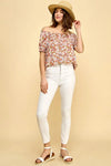 Add a touch of romance to your outfit with this floral print short sleeve off-the-shoulder blouse. The floral print exudes femininity and charm. The off-the-shoulder neckline is trendy and flattering. Perfect for a casual day out or a picnic in the park. Pair with shorts or jeans for a cute and summery look. Embrace a fresh and stylish style with this gorgeous blouse.
