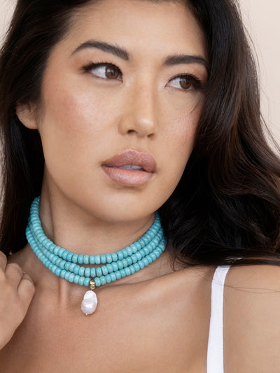18k Gold Plated, Reconstituted Turquoise, Freshwater Pearl