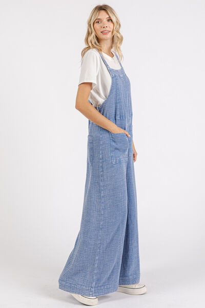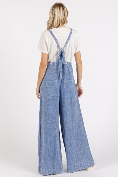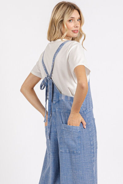 The Textured Wide Leg Overalls is a stylish and contemporary outfit choice. The textured fabric adds visual interest and depth to the overall look, making it a versatile option for various occasions. The wide leg cut offers a comfortable and flattering silhouette that is both trendy and elegant. This jumpsuit can be dressed up with heels and statement jewelry for a sophisticated evening look, or dressed down with sneakers for a more casual vibe. Its versatility and unique texture make it a standout piece in any wardrobe.