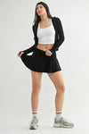 A ribbed foldover waist skort is a fashionable and functional garment that combines the look of a skirt with the practicality of shorts. The ribbed fabric adds texture and interest to the skort, while the foldover waist provides a comfortable and adjustable fit. This type of skort is versatile and can be dressed up or down depending on the occasion. It offers the freedom and ease of movement of shorts with the added coverage and style of a skirt. It's a great choice for those looking for a stylish and comfortable option for various activities.