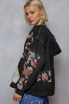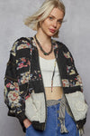 This stunning vintage-inspired bomber jacket features an eye-catching floral print on a dark base with elegant lace detailing. Crafted with a comfortable cotton blend fabric, it showcases a classic bomber silhouette with ribbed elastic cuffs and hem. The oversized relaxed fit makes it perfect for layering over casual outfits. The unique combination of feminine floral patterns and edgy bomber styling creates a versatile piece that transitions effortlessly from day to night. Quality construction with durable zipper closure and comfortable wearing experience make this jacket an essential addition to any fashion-forward wardrobe.