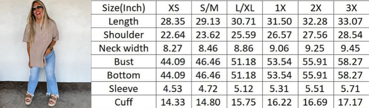 The perfect washed cotton, super soft boyfriend tee that everyone needs! Faded “vintage” colors. Features flattering rounded front and back hem with side slits!