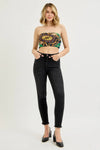 These high-waisted black skinny jeans feature a sleek and modern design perfect for contemporary fashion lovers. Crafted from premium stretch denim material that provides comfort and durability while maintaining the perfect fit. The high-rise waistline creates a flattering silhouette that elongates the legs and accentuates the waist. The classic black wash offers versatility for both casual and dressed-up occasions. The raw hem detailing adds a fashion, edgy touch to the overall design. Features traditional five-pocket styling with secure button and zipper closure. The ankle-length cut pairs perfectly with heels or boots, making these jeans a wardrobe essential for the fashion-forward individual.