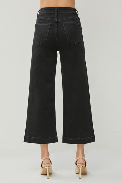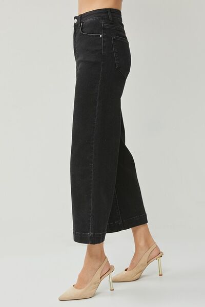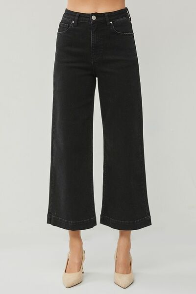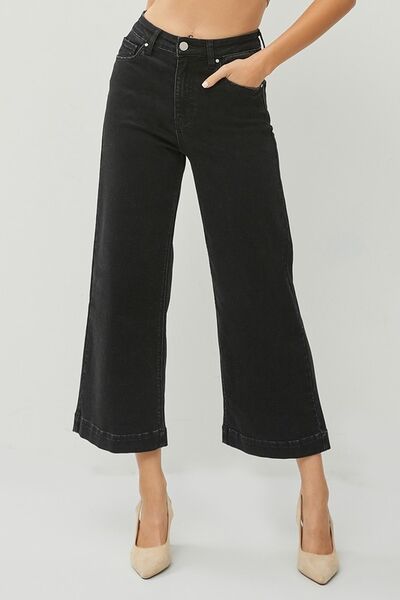 The High Rise Wide Leg Ankle Jeans combine a flattering high rise waist with a trendy wide leg silhouette for a stylish and chic look. These jeans feature a cropped length that hits at the ankle, perfect for showcasing your favorite shoes. Ideal for creating a fashion-forward outfit, these versatile jeans offer a modern twist on a classic denim style.