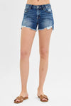 These fashion denim shorts feature a flattering mid-rise fit and contemporary distressed details. Made from premium stretch denim material that ensures both comfort and durability. The raw hemline with natural fraying adds a modern edge, while the classic 5-pocket design maintains timeless appeal. The medium wash creates a versatile look suitable for various casual occasions. The shorts are designed with careful attention to fit and feature quality stitching throughout. Perfect for summer styling, these shorts can be paired with multiple tops for endless outfit combinations.
