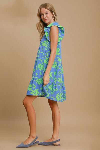 The Floral Print Ruffle Cap Sleeve Tiered Dress is a charming and feminine piece featuring a floral print and ruffle design. The cap sleeves add a touch of sweetness to the dress, while the tiered layers create a flowy and elegant silhouette. Perfect for summer days or special occasions, this dress exudes a romantic and delicate vibe. The floral print adds a playful and stylish element, making this dress a versatile and charming option for your wardrobe.