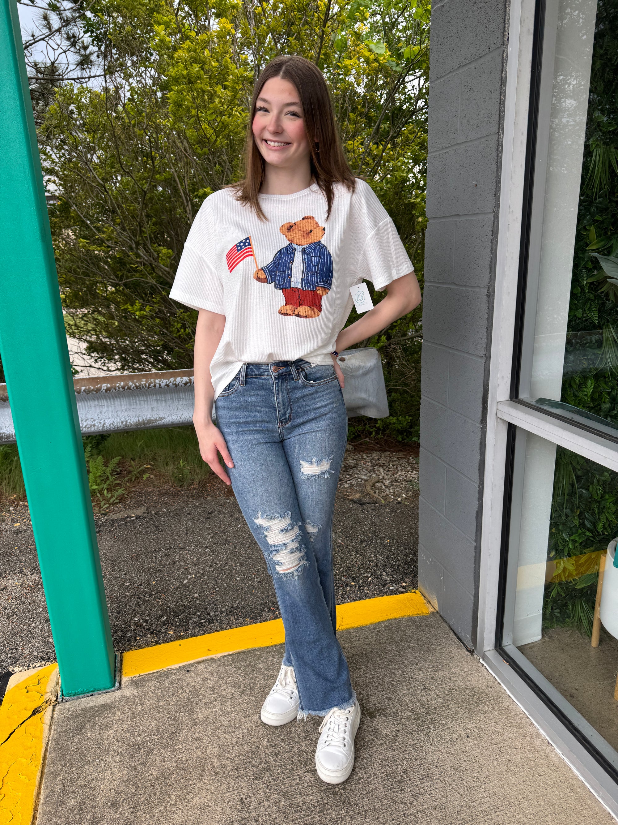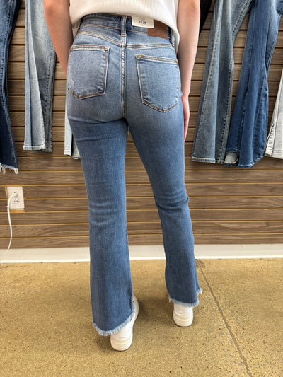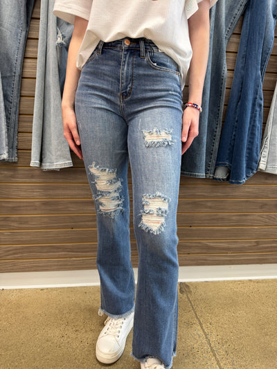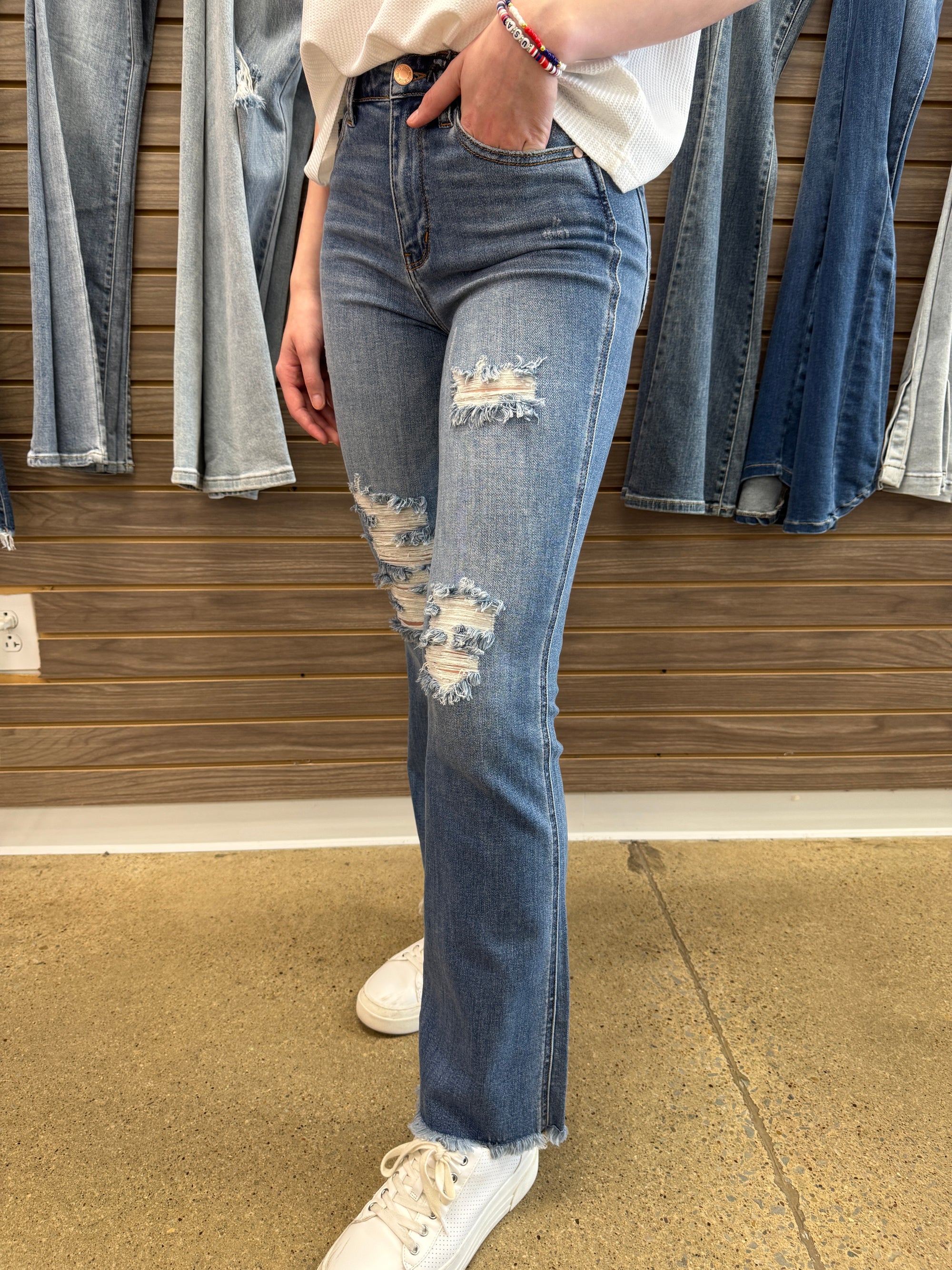 A Pair of High Waist Destroy Fray Hem Bootcut Jeans