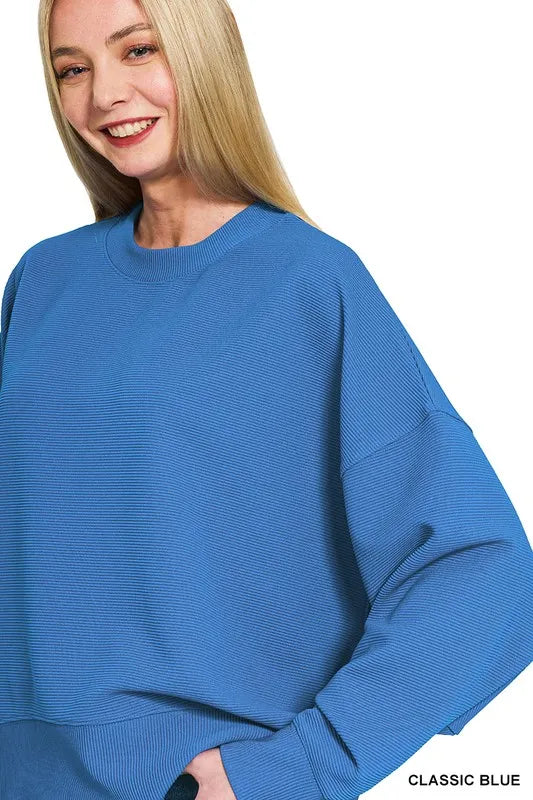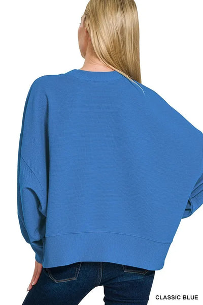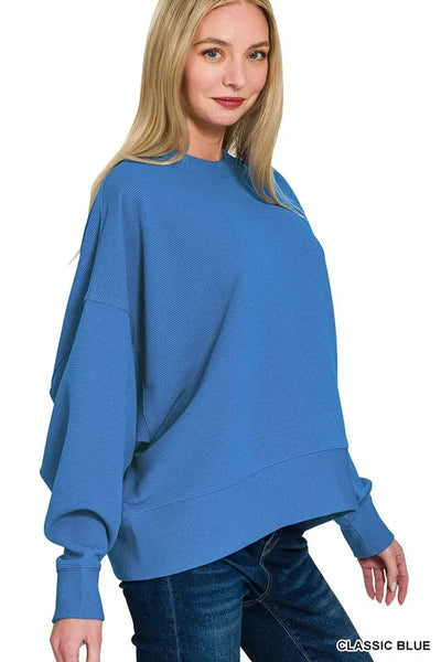 The Ribbed Balloon Sleeve Pullover is a trendy and cozy sweater that combines style and comfort. The ribbed texture adds a touch of sophistication, while the balloon sleeves give it a fashionable and unique look. The pullover design makes it easy to throw on for a relaxed yet stylish outfit. This sweater is perfect for adding a statement piece to your wardrobe while staying comfortable and warm. Pair it with your favorite jeans or leggings for a chic and effortless look.